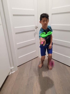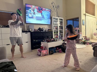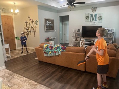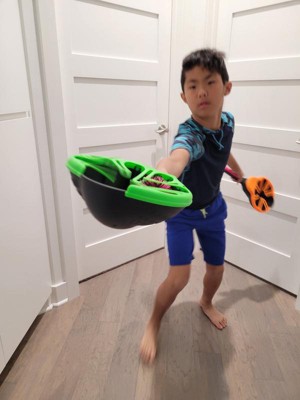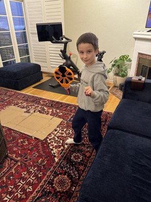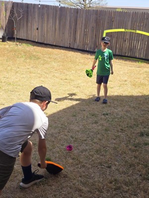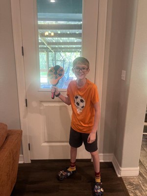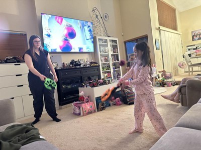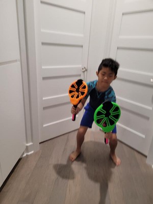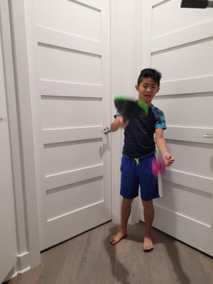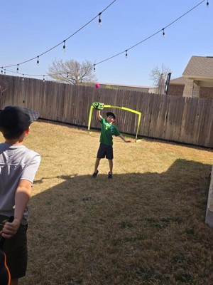 My kids enjoyed playing with this toy. The flix Stix were easy for both of them to hold. It took some trying to get used to the hand/wrist flick. They started out closer and slowly moved back. The koosh ball is a nice size, light weight and easy to hold. I can see this being a go to toy this summer with friends.
