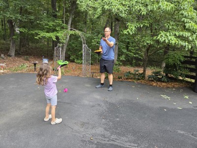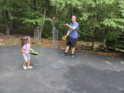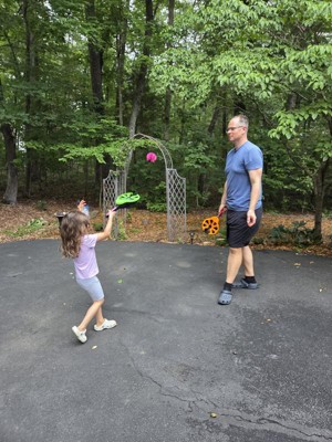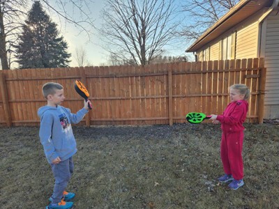 I have girls ages 4, 8 & 11 and we all have fun playing this together. Easy to catch for the younger ones. Fun to do inside or outside with family. We have the koosh paddles and love those but this is easier for my younger kids to do and I’m so thankful we found something we all love
