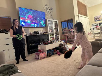 We absolutely loved playing the Koosh Flix Stix game! It got our family of 3 playing, moving and laughing! Just what we needed after being cooped up for the winter. The Flix Stix are durable and I loved that they were shaped similarly to a lacrosse stick because it introduced my daughter to the idea of a new sport! Playing with a Koosh ball provides a safe ball to play with both indoors and outdoors. My daughter esp loved the bright, neon colors on the Stix and Koosh ball. If you are looking for a fun, engaging game for the whole family, we highly recommend this one!