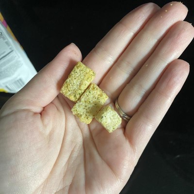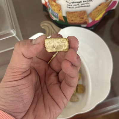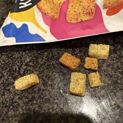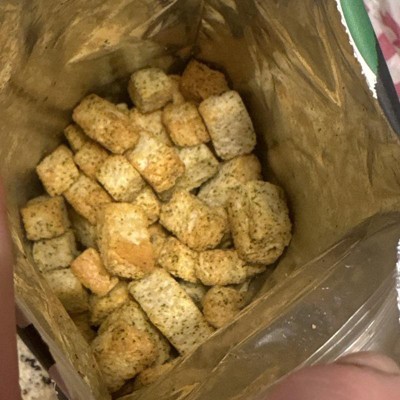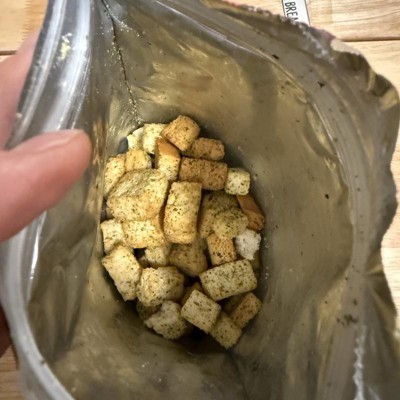 [This review was collected as part of a promotion.] These croutons are delicious and such a crunchy yummy crouton! I absolutely love how crispy these are. The flavor is absolutely wonderful, there isn’t much sourdough flavor to them, but I don’t mind that, I really do love these a lot! The back was filled to a good amount that I was happy with and my family will love eating these on their salads, or as a crispy yummy snack on the side! I received an incentive to write this review.