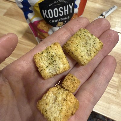 [This review was collected as part of a promotion.] These croutons are perfection! The name is slightly deceiving. Because they are called Kooshy I thought they would be a little squishy. These are very crunchy though. Look at all the perfect Italian spices. These are very flavorful and I enjoyed them on their own. Adding them to my salad was exquisite. A very tasty addition to one of my favorite sides with Italian dressing. I’m sure Amy dressing would be tasty though. I received an incentive to write this review.