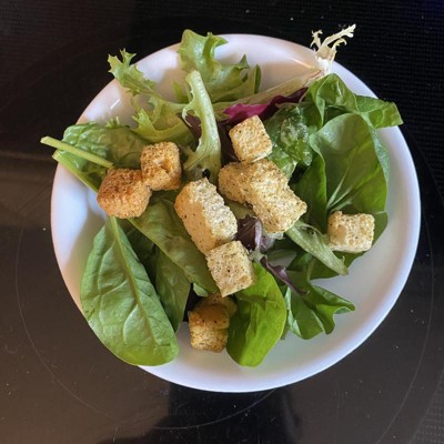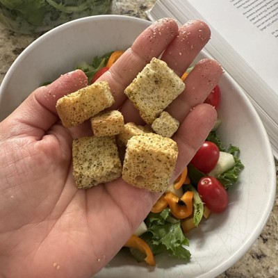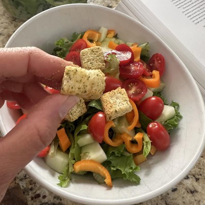 [This review was collected as part of a promotion.] Delicious! These croutons have the perfect amount of seasoning and crunch! My husband and I put them on our wraps with some salad and it really elevated the wrap! Of course they would be great on salads as well. Nice to find a crouton brand that’s tasty and you won’t scratch the roof of your mouth on. I would say the taste is buttery with Italian seasoning and therefore would go with many different types of salads and dressings. I received an incentive to write this review.