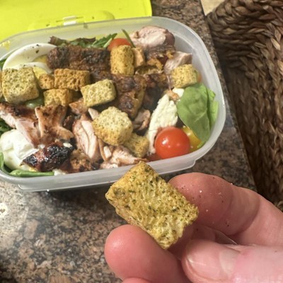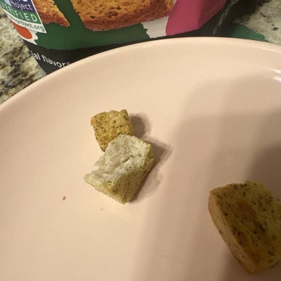 [This review was collected as part of a promotion.] It’s amazing how something so insignificant can make me so happy. I love croutons but have stopped eating them for the most part because I can only have organic bread because I have a sensitivity to the chemicals used on non-organic wheat crops. I only get croutons when I bake my own sourdough bread and there are leftovers, bu I have not done so in months. These were well seasoned and very crunch and sold at a great price! I received an incentive to write this review.