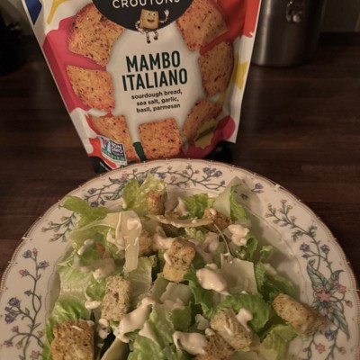 [This review was collected as part of a promotion.] These croutons are so full of flavor that you’ll want to do the mambo! Flavor bits on every single crouton! Croutons are crispy and just the right size. I love that they are made of sour dough with only 1 gram of fat. Great on a salad or as a crunchy snack all on their own! I haven’t tried feeding them to the birds yet (as suggested on the bag!) but that’s next on my list! I received an incentive to write this review.