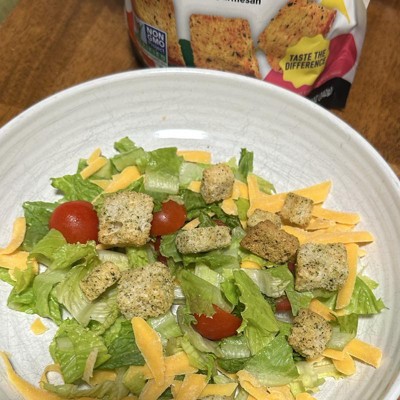 [This review was collected as part of a promotion.] These croutons are addicting to snack on. The flavor of the seasoning really packs a punch, and adds so much to a regular salad. The garlic flavor and cheese really comes through with each bite. These are very crunchy and delicious! I snack on these with balsamic glaze and they are addicting. These will definitely impress any guest or just elevate your salad in general. I received an incentive to write this review.
