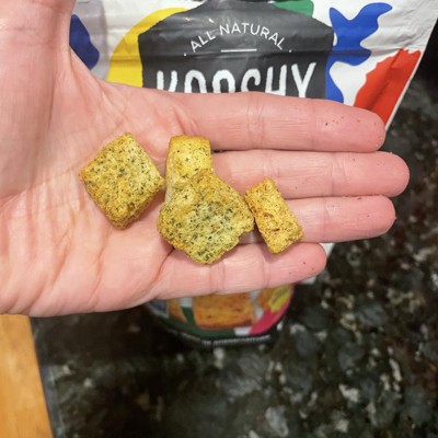 [This review was collected as part of a promotion.] These are the kooshy croutons in the flavor mambo italiano. These are made of sourdough bread, garlic, basil, and parmesan. I really love the flavor of these and the crunch was top notch. I use these for a delicious addition to my onion soup, as well as the obvious salad topper. The price is really great for the size of the bag and the flavor. I highly recommend these. I received an incentive to write this review.