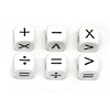 Koplow Games Operators Dice, 6 Per Set, 6 Sets | Koplow Games Math Operators Dice Set is a fun, hands-on way for students to learn basic math operation. Children learn more effectively when it is reinforced through play. Perfect for individual play, in small groups or as a classroom making these dice a great educational resource. Dice measure 16mm (5/8"). Each set includes 6 white opaque operator dice and feature symbols for addition, subtraction, multiplication, division, greater than/less than and equal to ( + , - , x , ÷ , > , < , = ). Sold as 6 sets for a total of 36 dice.