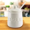 - HOMEY DESIGN - This container is the perfect touch of style to your countertop. The sugar jar comes in a clean ivory color. With the text “sugar” lightly displayed on the front