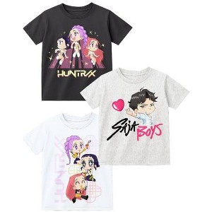 KPop Demon Hunters Chibi Huntrix and Saja Boys Youth 3-Pack Crew Neck Short Sleeve T-shirt- XS 4/5