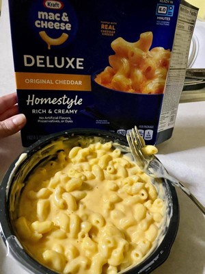 Kraft Deluxe Original Cheddar Macaroni and Cheese is a popular choice for its creamy, cheesy flavor and convenience. Guests appreciate that it doesn't require additional ingredients like milk or butter, making it quick and easy to prepare. While some find the flavor a bit artificial or salty, many enjoy it as a comforting meal or side dish.