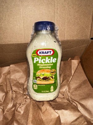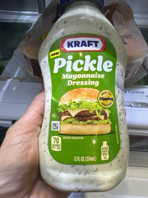 A: Kraft Pickle Mayonnaise Dressing - if you love pickle flavor this is the condiment for you. Velvety smooth Kraft Mayo mixed with real pickles to create a tangy dill-icious sauce. This mayonnaise will be perfect for your next sandwich, burger and anywhere else you can think to use it.