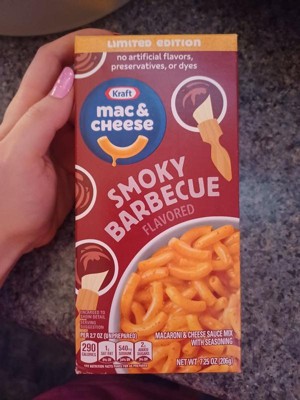 - KRAFT MAC AND CHEESE: One 7.25 oz box of Kraft Smoky Barbecue Flavored Mac & Cheese Macaroni and Cheese Dinner
