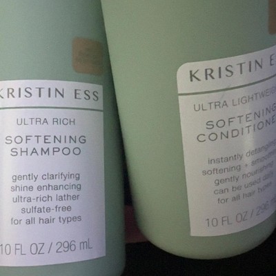 Kristin Ess Ultra Lightweight Softening Conditioner helps detangle while replenishing moisture and providing intense softness. This moisturizing conditioner is restoring, extra softening + smoothing and lightweight enough to be used daily without causing build up.