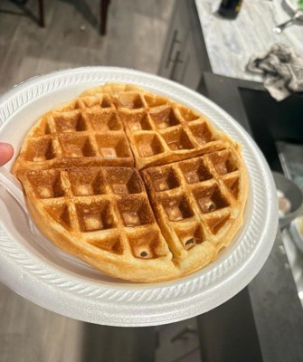 The packaging for this waffle mix is spot on showing you a perfect waffle. The waffles are fluffy and taste great. They don’t have an aftertaste like other mixes can have. The value for this mix is good. This is the only brand that allowed in my kitchen!