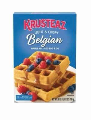 Krusteaz waffle mix is delicious. Crispy outside and soft inside. The taste is just perfect I don’t need to add more syrup. The price affordable, easy to cook , quick breakfast.