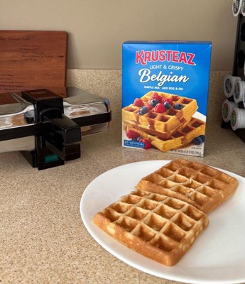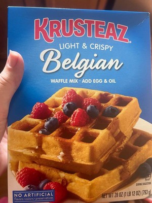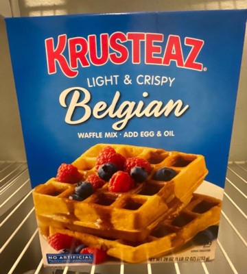 Krusteaz Belgian waffle mix makes great fat Belgian waffles that taste like I’m eating at a hotel or restaurant. The price for a box is not too expensive and worth having something delicious on your plate for breakfast lunch or dinner .