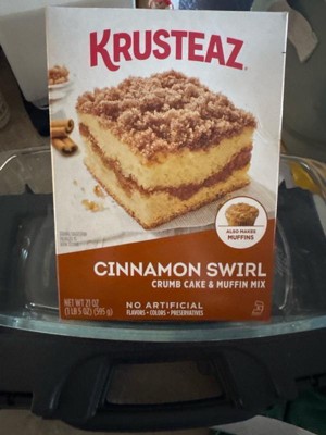 Die hard fan of krustiez with reliable products and variations. The crumb cake comes out with this flaky texture, pouring cinnamon from the top, and packed with flavor. Makes enough for two adults and three kids for a full round of breakfast and as a snack later.
