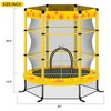 This 55" kids trampoline is complete with safety details, including the 360 degree enclosure net and safety pad around the frame that creates a safe roomy space for fun activities, while the double pull zippers allow for easy access in and out of the trampoline. Foam padded poles buffer unexpected collision while jumping, and the mesh net bottom is sewn to the jumping mat to eliminate gaps between.