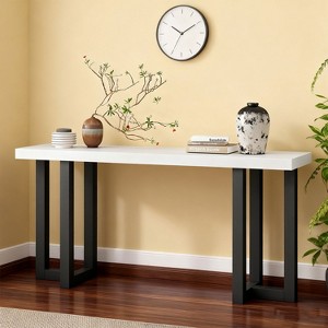 - [Versatile for Any Space]:Whether placed in a hallway, study, or living room, this console table seamlessly fits into any setting. Its geometric design and combination of materials bring both style and functionality, offering ample space for decorative items or essentials.