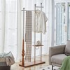 - Smart Zoned Storage,Upper tier: Separate zones for long/short items. Lower tier: Solid wood shelves for bags/shoes. Open design for easy access.