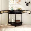 - [Exquisite Handcrafted Design] This artisan-crafted demi-lune console table showcases intricate curved rattan drawer fronts, meticulously shaped by skilled hands for seamless elegance. The sophisticated half-moon silhouette—with smooth, rounded edges—not only enhances visual appeal but also ensures child and pet-friendly safety. Every detail reflects masterful craftsmanship, making it a standout statement piece for any refined space.