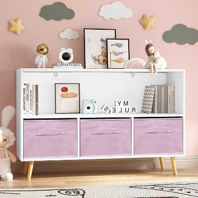 KTMBDW Kids bookcase with Collapsible Fabric Drawers, Children's Book Display, Toy Storage Cabinet Organizer, Gray