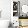 This tall bathroom storage cabinet is designed to meet all your organizational needs. Featuring 4 spacious interior compartments and 3 dedicated drawers. it provides ample room for towels, taller shampoo bottles, and everyday wash supplies. The large drawer is perfect for storing personal items like toothpaste and soap, while the thoughtful countertop adds a touch of convenience to daily routine.