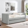 This Upholstered daybed doubles as a space-saver! The pull-out trundle adds an extra twin-sized bed¡ªperfect for guests¡ªwhile the twin day bed transforms rooms into stylish multi-functional zones. Ideal for apartments, dorms, or cozy guest suites!