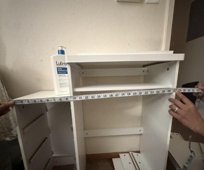 First of all , there’s three bags of screws A,B,, which have atleast two different types of screws in there so confusing on that part . Only some of the parts were labeled… the other I had to label. But the thing that made me upset the most was that the measurements are off. Didn’t even finish making it. Not even enough table space to have a sheet of paper. Don’t bother buying this item it’s a waste of time.