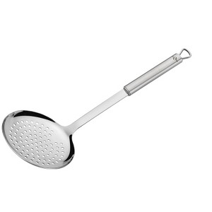 Skim and strain with precision using the Kuchenprofi Parma Skimmer. This 14-inch skimmer is crafted from high-quality 18/10 stainless steel, featuring a perforated design for efficient draining and skimming.