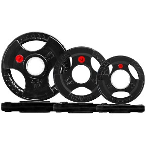 - Easy Grip and Identification: Each plate features three large openings with easy-grip stripes and is labeled in pounds and kilograms.