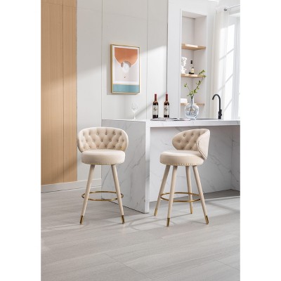 Product Name: Kumasinova 24"-31"H Swivel Bar Stools Set of 2,Luxury Velvet Counter Height Barstools with Golden Metal Base&Footrest,250lbs Max,Beige