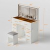 - Integrated Charging Station: This practical vanity table includes built-in power outlets and USB ports conveniently integrated into the design, allowing easy charging of devices and powering of styling tools while using your makeup vanity station.