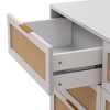 - Natural Rattan Drawer Fronts in Wood Tone: Textured design elevates dresser for bedroom style.