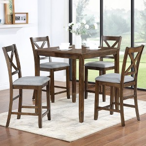 Product Name: Kumasinova Counter Height Dining Table Set,Wood Square Table & 4 Upholstered Chairs with X-Shaped Backrest,Table Set for Kitchen,Dining Room,Walnut