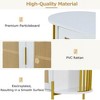 Transform your space with this elegant rattan sideboard cabinet, blending modern design and natural charm. Crafted from premium particleboard, the cabinet features smooth curved lines, rounded corners, and woven rattan door panels for visual depth. Gold powder-coated handles, legs, and vertical supports add luxury, while two curved open shelves (47LBS capacity) display decor or hold essentials. The interior adjustable shelf (110LBS) customizes storage for dishes or kitchenware, and the sturdy tabletop (331LBS) suits living rooms, dining areas, or kitchens. Available in black, natural, and dark gray, white, this sideboard cabinet combines functionality with timeless style as a versatile buffet cabinet or storage cabinet.