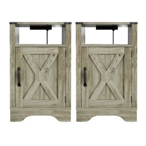 Product Name: Kumasinova Set of 2 Farmhouse Nightstand,Side Table with Charging Station and Open Shelf,Modern End Table with X-Door for Bedroom,Living Room,Gray