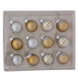 Kurt Adler Miniature Glass Ball Christmas Tree Ornament Set, Gold and Silver, 1" (12-Count)