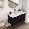 This wall-mounted vanity saves valuable floor space, making it ideal for small bathrooms or dressing rooms. The vanity features two spacious storage drawers for convenient organization of bathroom essentials. Easily categorize and store toiletries, cosmetics, and cleaning supplies, bidding farewell to cluttered cabinets.