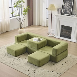 KWPZQEB 79.14" Convertible Sectional Sofa, Chenille Floor Sofa with 3 Movable Ottomans, 3 Seat Modular Sectional Sofa for Living Room, Apartments