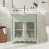 KWPZQEB Bathroom Vanity with Ceramic Sink, Vintage Vanity Cabinet w/ Vertical Striped Tempered Glass Doors & Adjustable Shelf, Floor Storage Cupboard