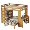 KWPZQEB Bunk Bed with Dismountable Lower Bed & Desk, Solid Wood High Loft Bed Frame with Storage Shelves & Wardrobe for Bedroom, Easy Assembly