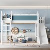 This loft bed with built-in shelves and cabinets combines style and practicality, adding a touch of flair to a child's room. The design is both fun and functional, featuring shelves and cabinets for easy storage of essentials; a detachable slide adds a fun element that kids will love. This loft bed is ideal for families looking to maximize space while providing a safe, durable, and fun sleep solution for their children.