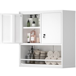 KWPZQEB Wall Mount Storage Cabinet, Metal Kitchen Pantry Cabinet w/ Adjustable Shelf & 2 Doors, Key Lock & Open Storage for Kitchen, Dining Room