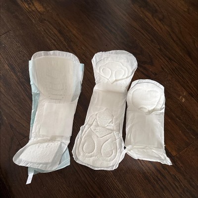 Reading all the reviews I don’t understand why no one has mentioned these pads are TINY! Like for a teenager. I’m a small person and they barely fit in my underwear. So weird this never happened to me before, I didn’t know they made such small pads. On top of that they are very thin. I would have just purchased the always cotton, which I know are a regular size pad. I took a picture for reference with the other size included and an always.