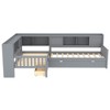 L-shaped Platform Bed Twin Size with Trundle Solid Wood Platform Bed with Storage Drawers and Shelves No Spring Box Needed Grey