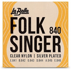 The La Bella 840 Folksinger set has ball-end clear nylon trebles and silver-plated wound basses. A special design, the nylon strings include a small ball attached to one end of each string. Easy to use, this eliminates tying each nylon string to the bridge and is suitable for both Spanish-style folk and classical guitars.