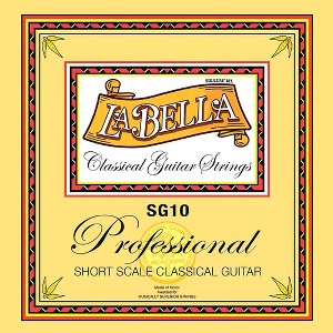 The SG10 Classical Short Scale Guitar Strings from La Bella include professional series clear high-density nylon trebles and silver-plated wound basses. These strings are tuned like a standard classical guitar EADGBE.