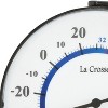 Looking for a reliable, bracket-mounted thermometer that works both indoors and outdoors? Look no further than this La Crosse Analog Weather Thermometer! This handy device accurately measures temperature in Fahrenheit and features a 5-in. round dial and black pointer for easy reading, even from a distance. 32°F even has its own special mark so you’ll easily know when it’s above or below freezing. Installation is easy thanks to included bracket, and the thermometer itself is weatherproof for long-lasting use. Don't wait — get your thermometer today and stay ahead of the temperature changes!_