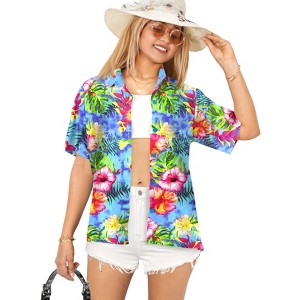 LA LEELA Button Down Shirt Casual Summer Beach Party Blouse Shirt Floral Blouses Short Sleeve Dress Tops Tee Shirts Hawaiian Dresses - 1 of 4